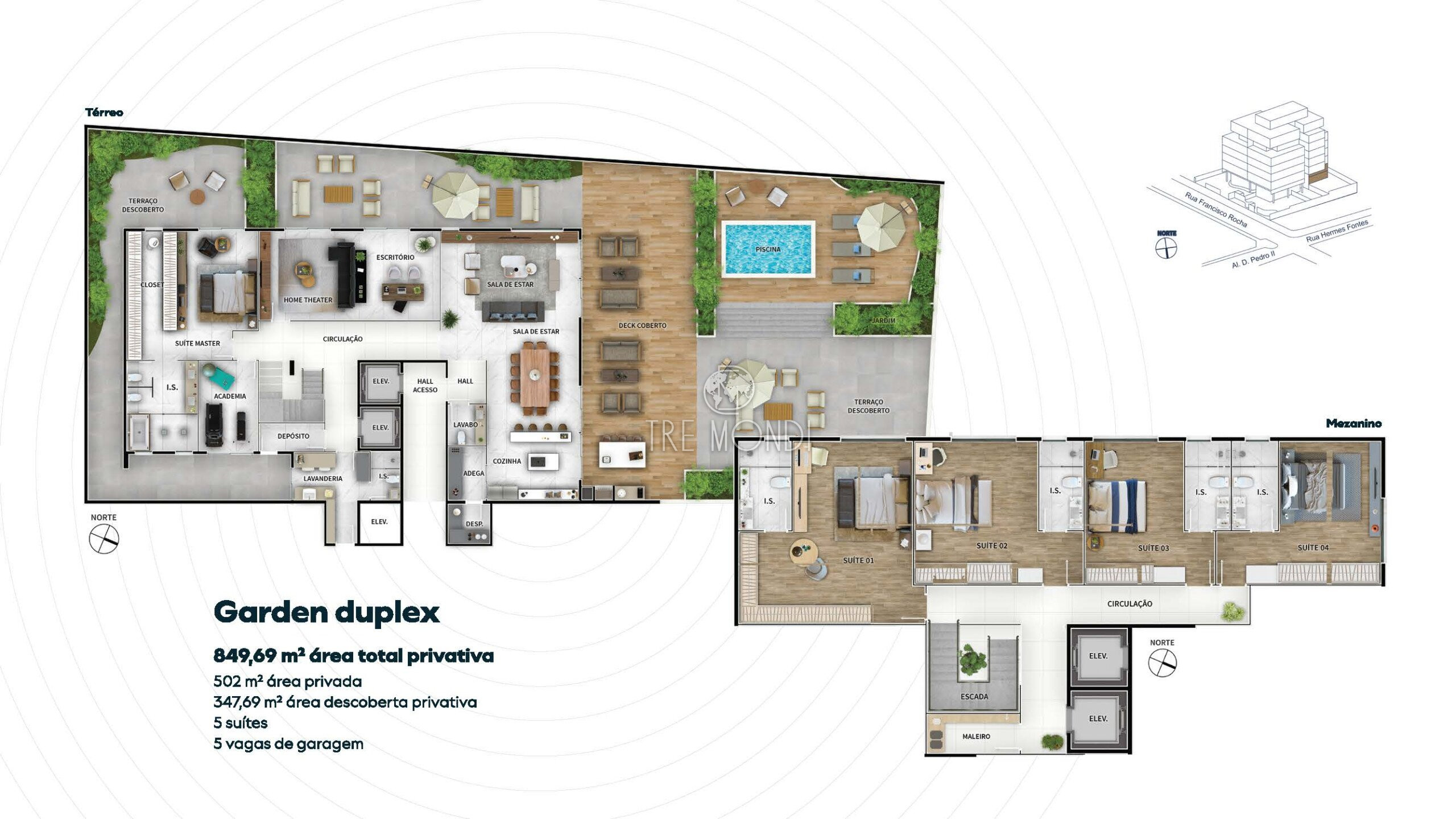 502m² de apartamento + 347,69m² de jardim exclusivo = 849,69m² privativos