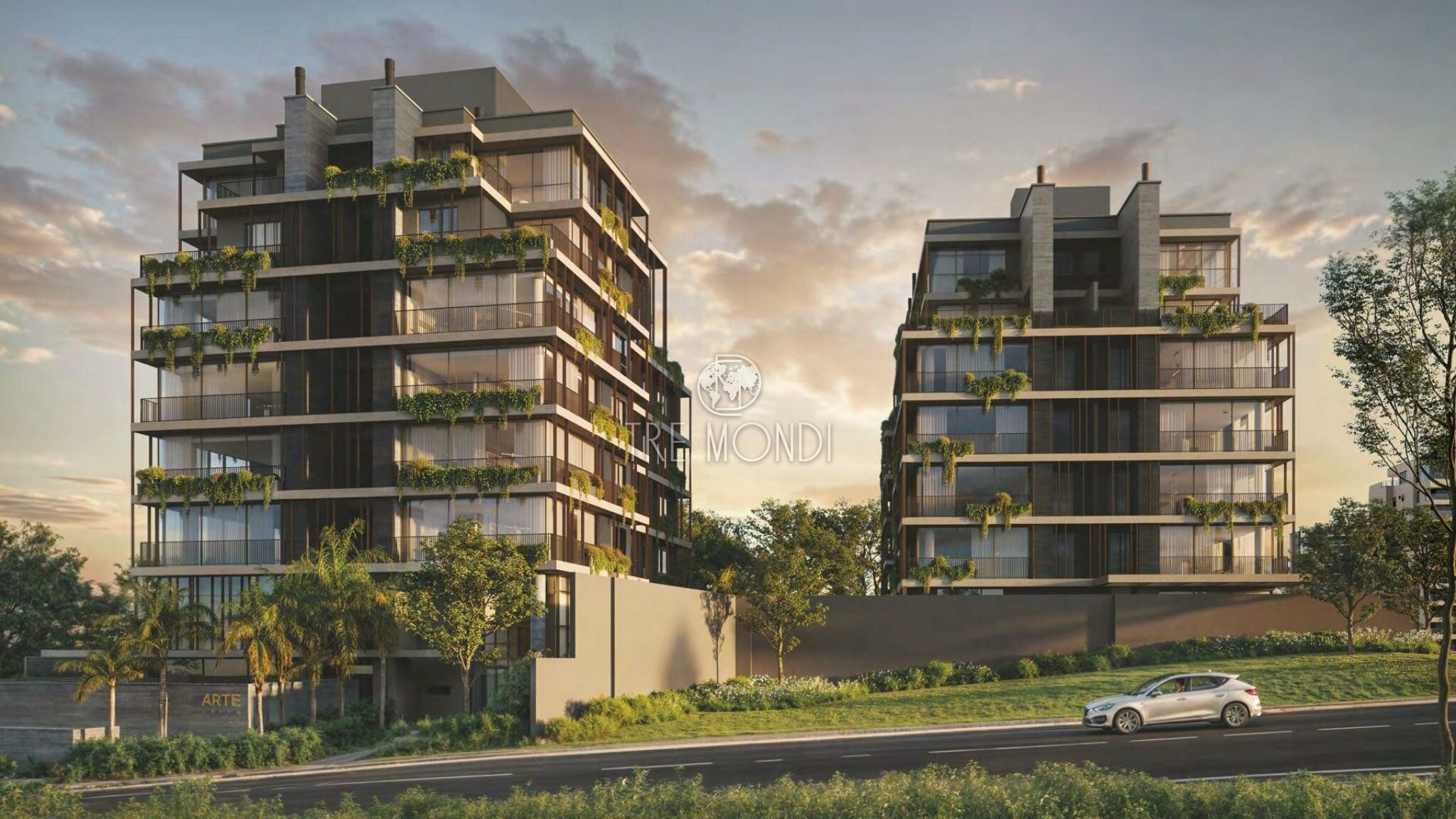 As torres do Arte Batel, localizadas no ponto mais alto da Carmelo Rangel, oferecem vistas livres no platô da região, projetadas para garantir privacidade e conexão com a natureza.