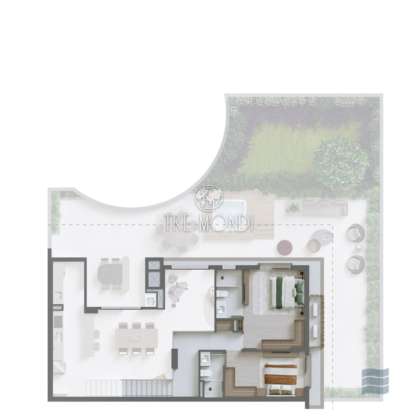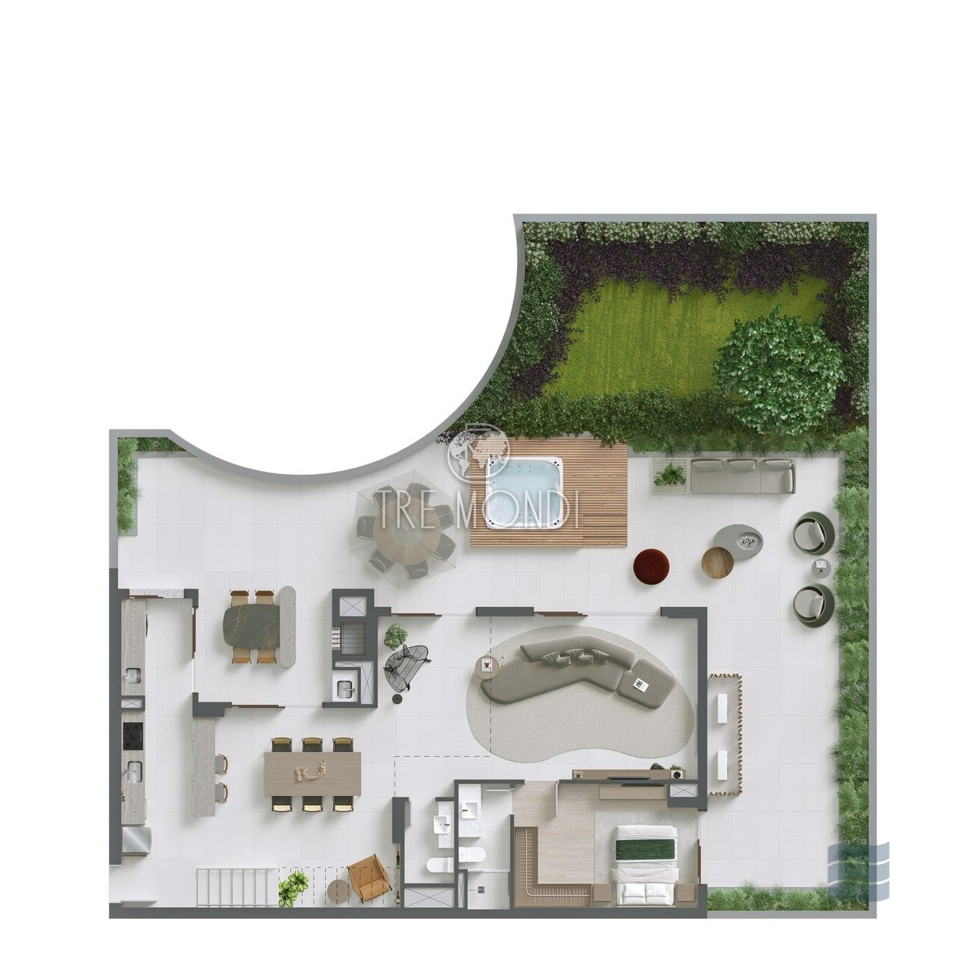 194,14m² de apartamento + 140,28m² de jardim privativo = 334,42m² de área privativa
