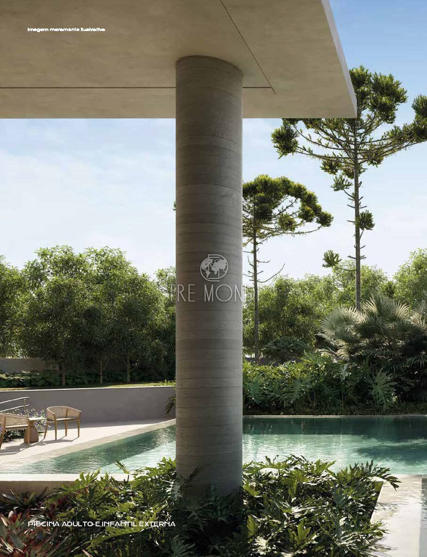 Amplo jardim com piscina